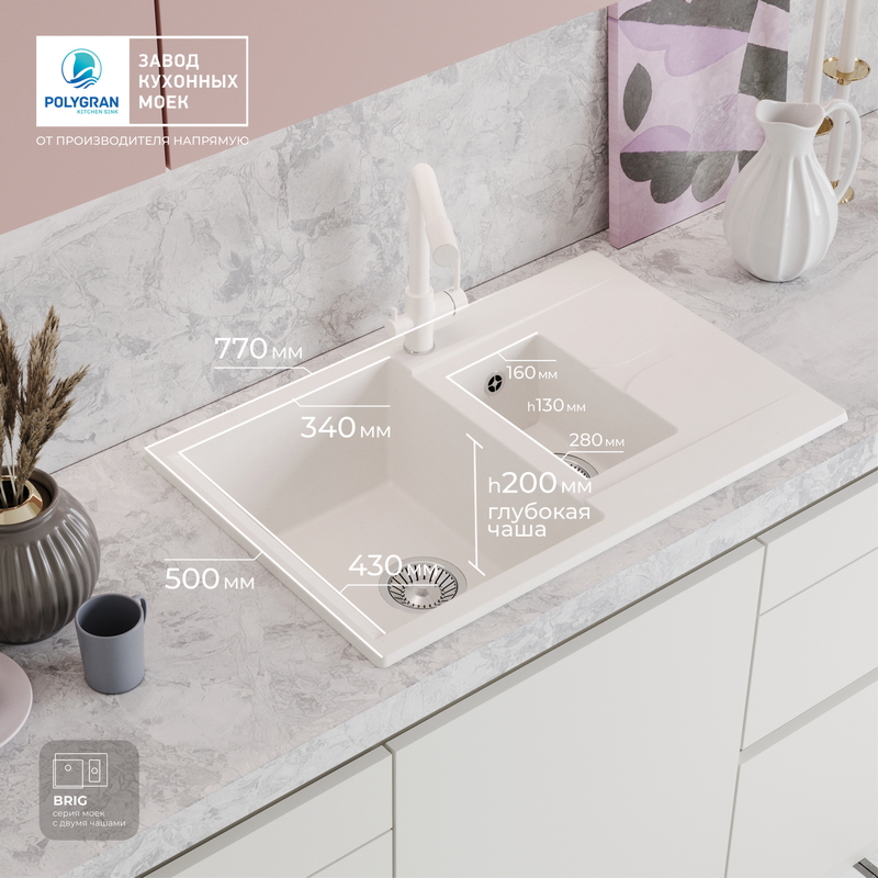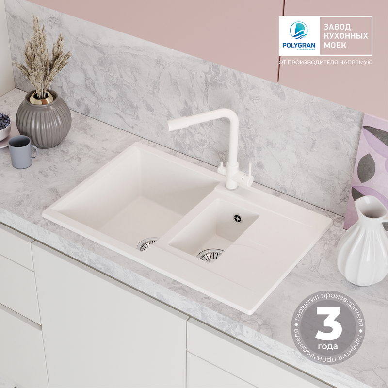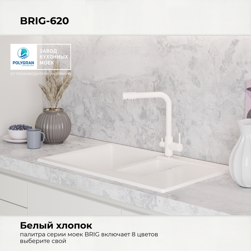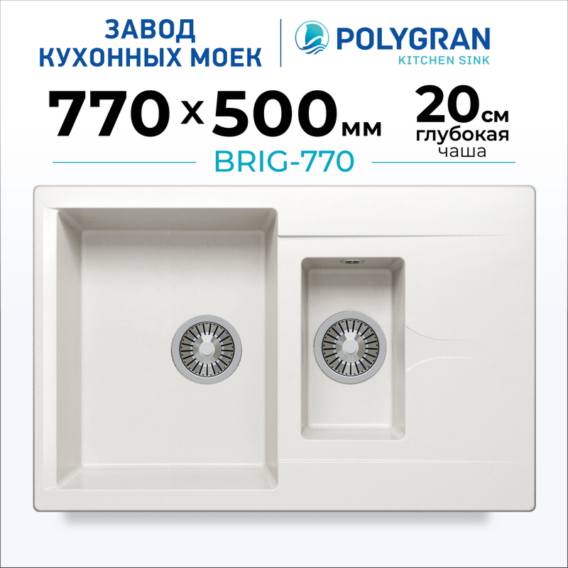 Мойка кухонная POLYGRAN BRIG 770 (белый хлопок №36)