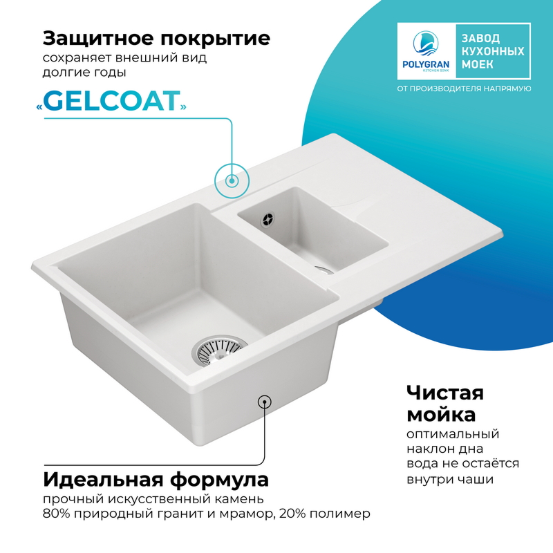 Polygran — российский бренд, специализирующийся на производстве высококачественных кухонных моек из искусственного камня. Компания успешно сочетает современные технологии и стильный дизайн, предлагая долговечные и функциональные изделия. Мойки Polygran отличаются прочностью, устойчивостью к повреждениям и высоким температурам.