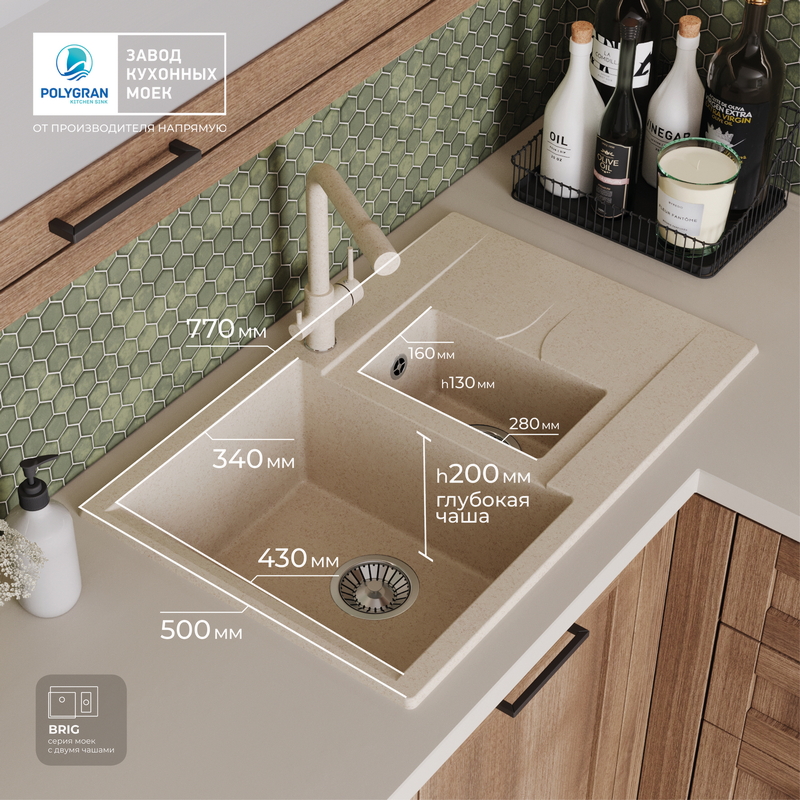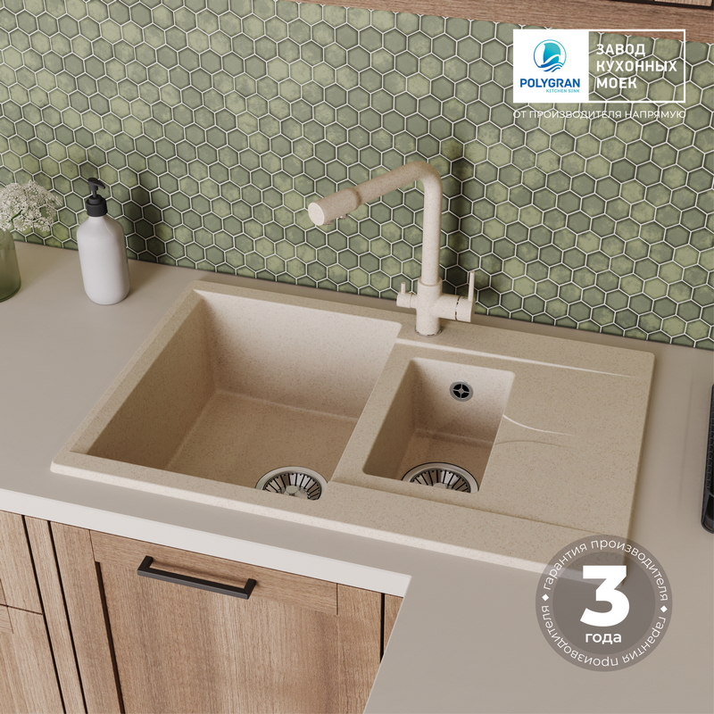 Мойка кухонная POLYGRAN BRIG 770 (кремовый №327)
