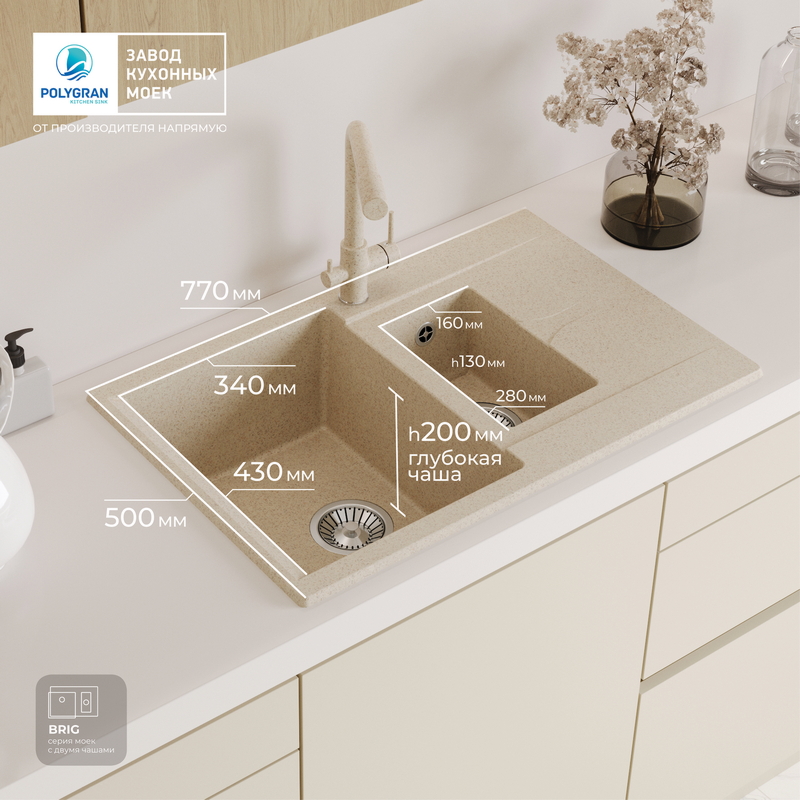 Polygran — российский бренд, специализирующийся на производстве высококачественных кухонных моек из искусственного камня. Компания успешно сочетает современные технологии и стильный дизайн, предлагая долговечные и функциональные изделия. Мойки Polygran отличаются прочностью, устойчивостью к повреждениям и высоким температурам.