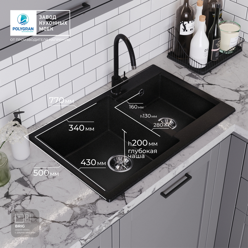 Мойка кухонная POLYGRAN BRIG 772 (черный №16)