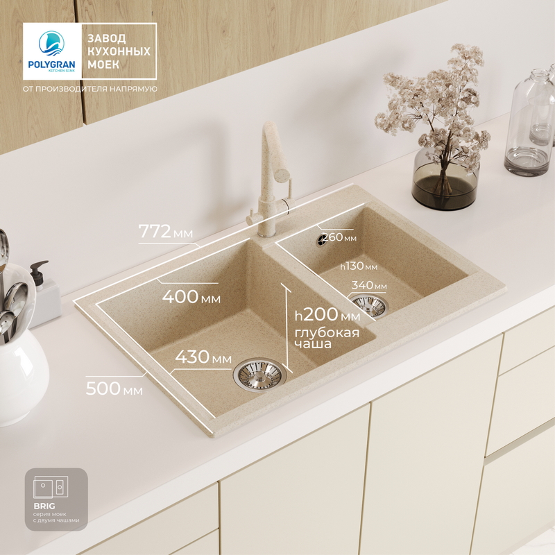 Мойка кухонная POLYGRAN BRIG 772 (опал №328)