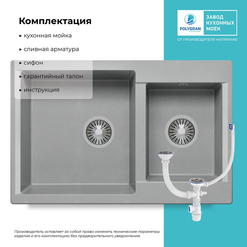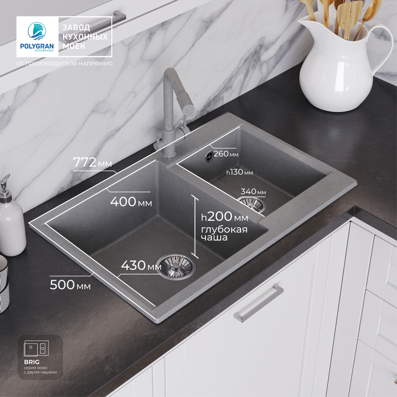 Polygran — российский бренд, специализирующийся на производстве высококачественных кухонных моек из искусственного камня. Компания успешно сочетает современные технологии и стильный дизайн, предлагая долговечные и функциональные изделия. Мойки Polygran отличаются прочностью, устойчивостью к повреждениям и высоким температурам.