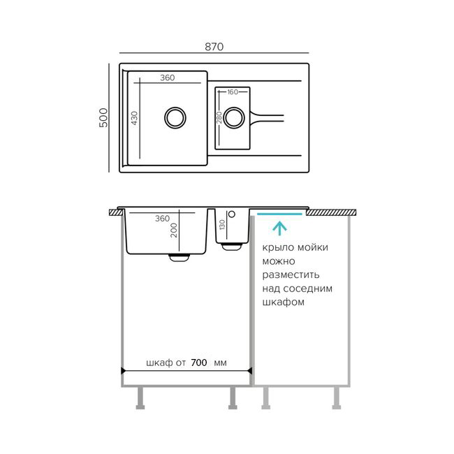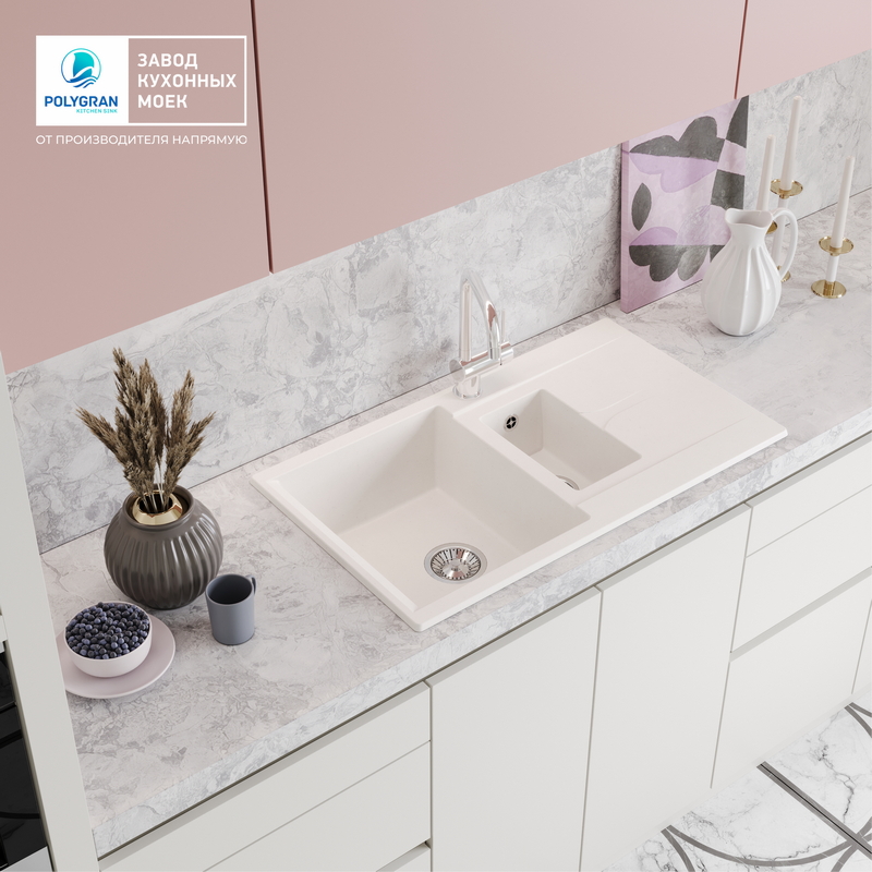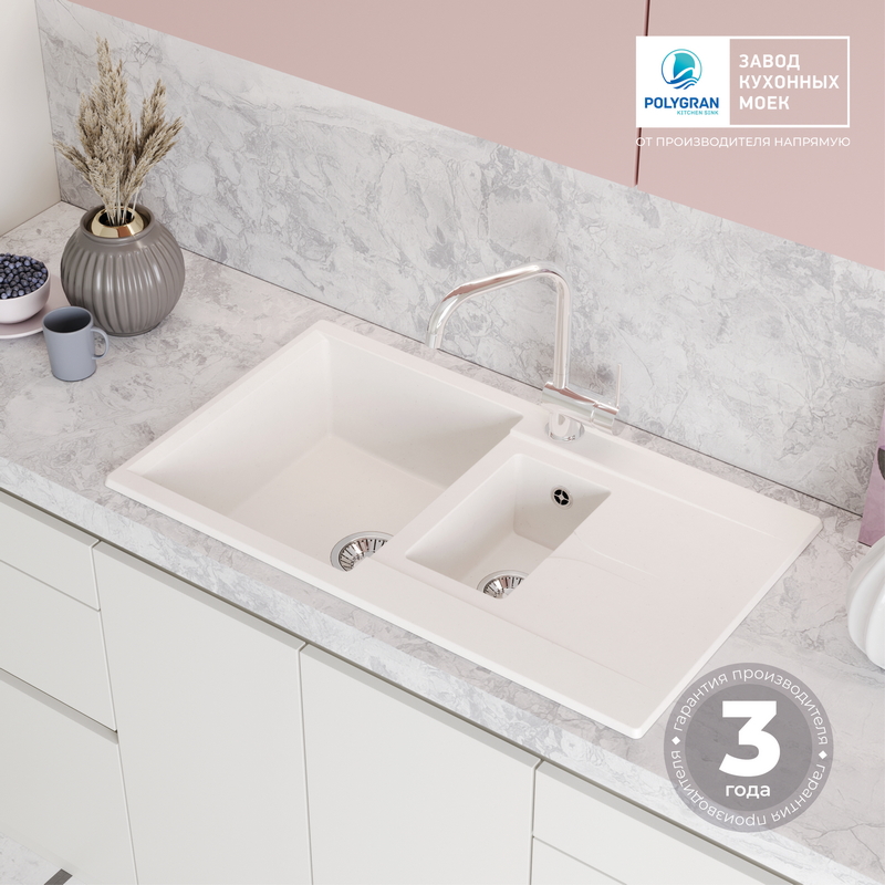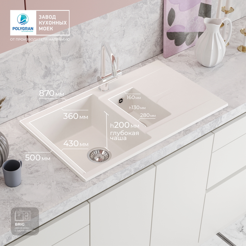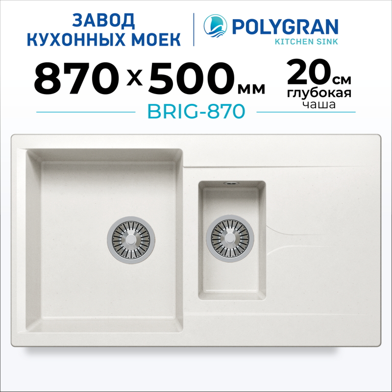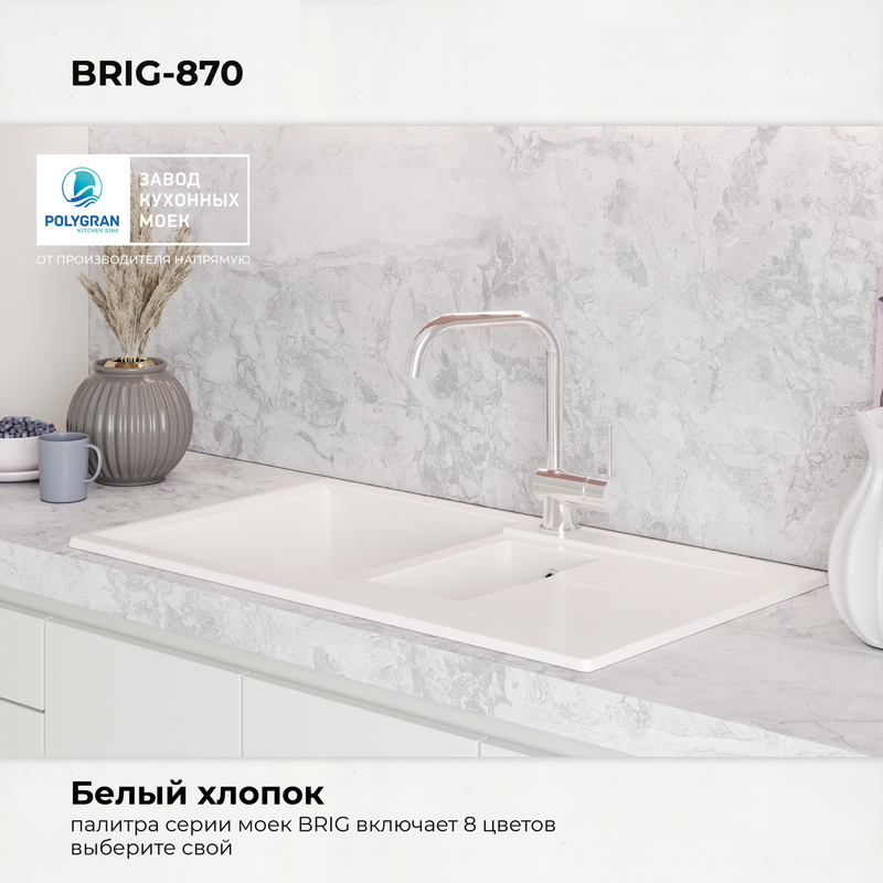 Мойка кухонная POLYGRAN BRIG 870 (белый хлопок №36)