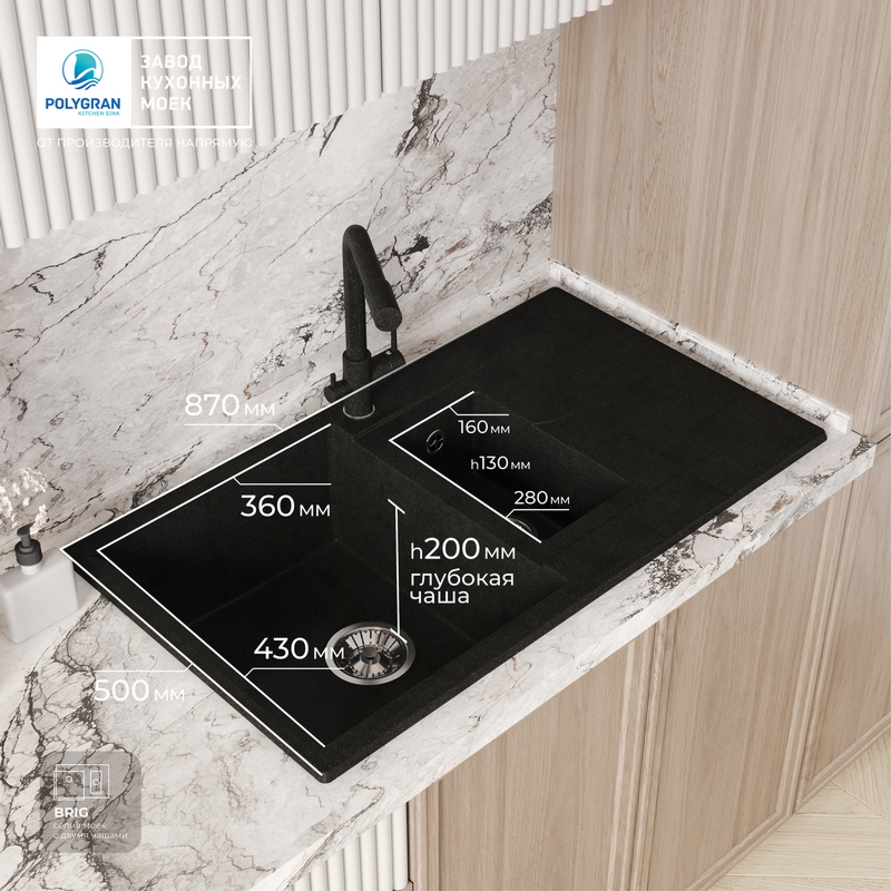 Мойка кухонная POLYGRAN BRIG 870 (космос №316)