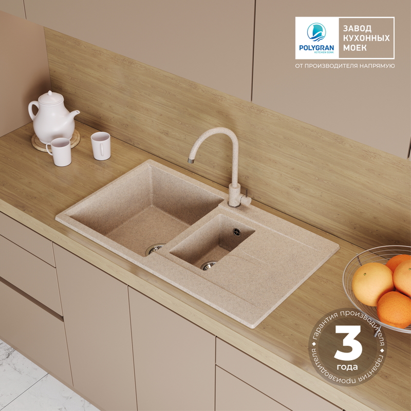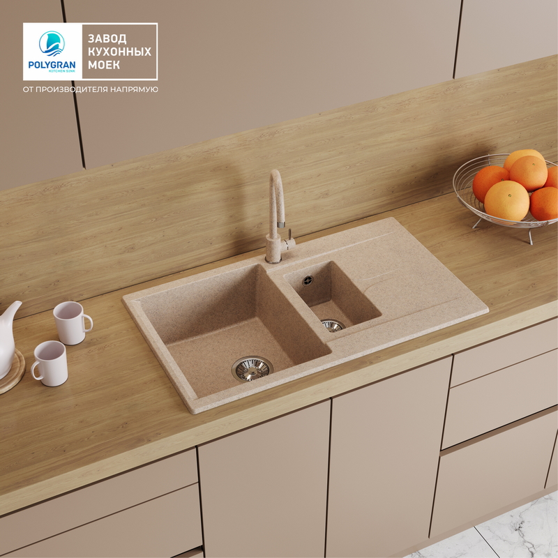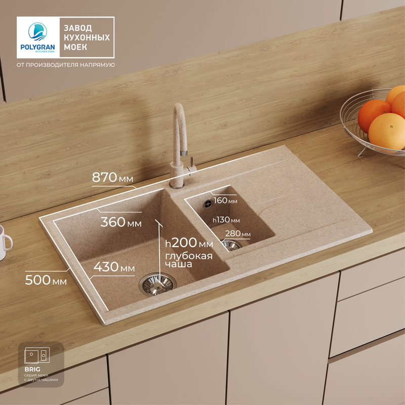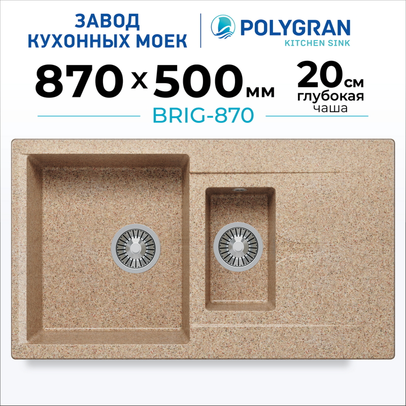 Мойка кухонная POLYGRAN BRIG 870 (песочный №302)