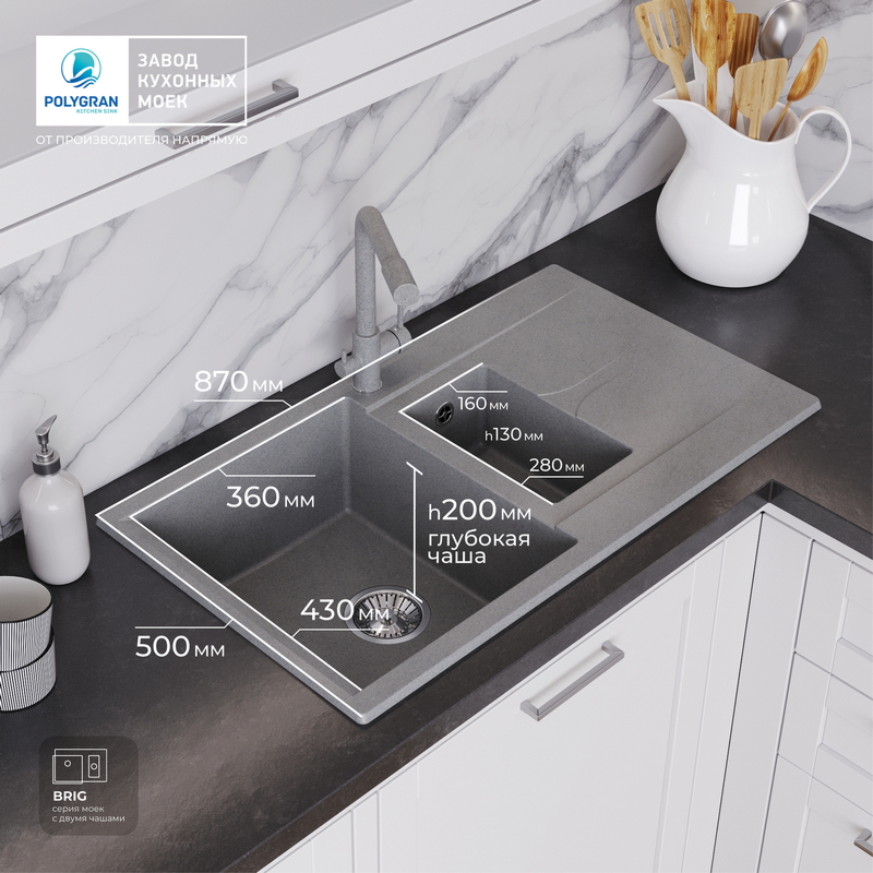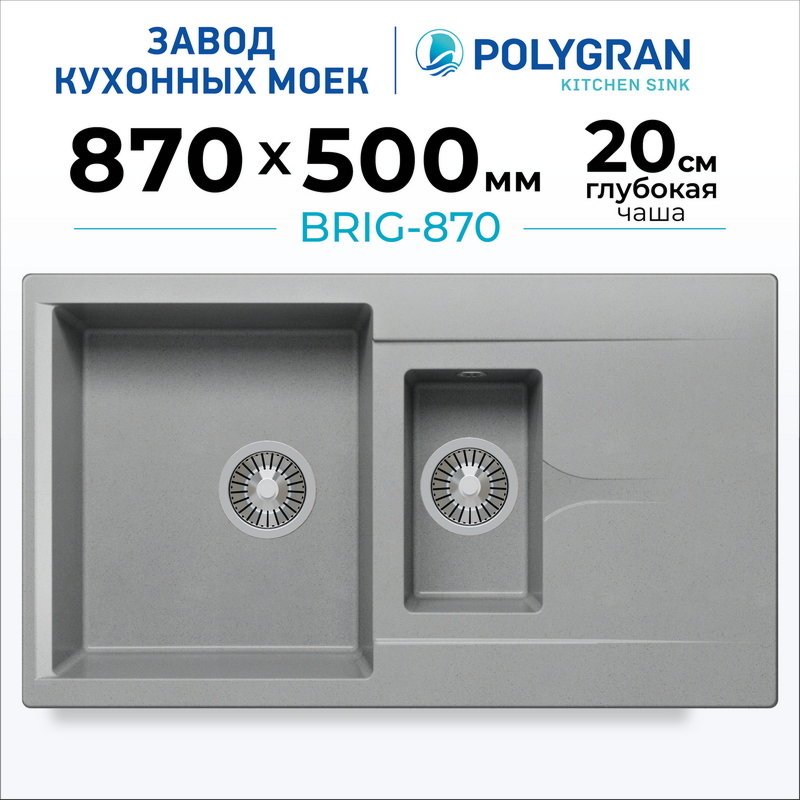 Мойка кухонная POLYGRAN BRIG 870 (серый №14)