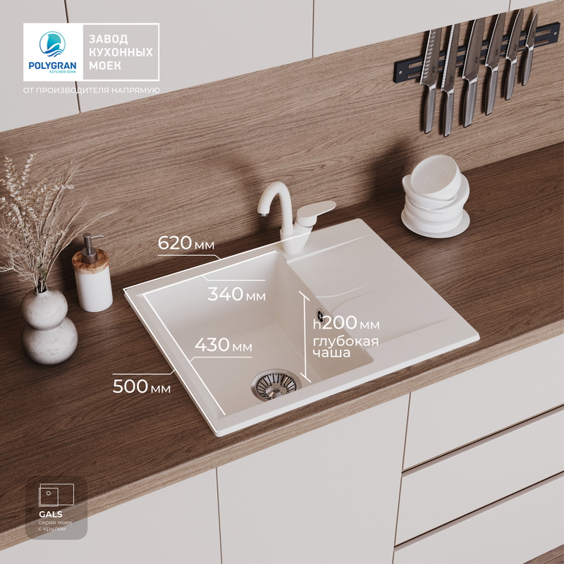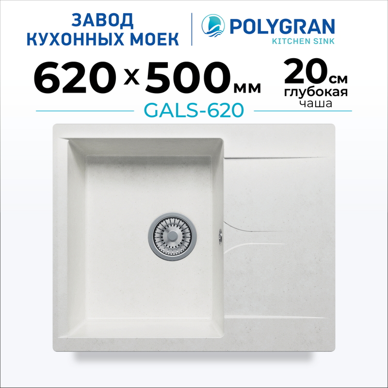 Мойка кухонная POLYGRAN GALS 620 (белый хлопок №36)