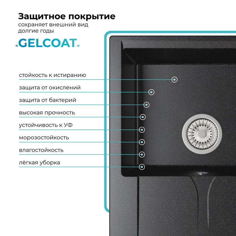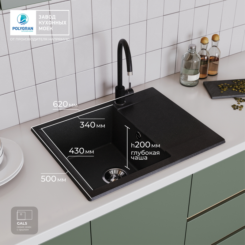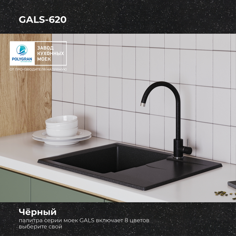 Мойка кухонная POLYGRAN GALS 620 (черный №16)