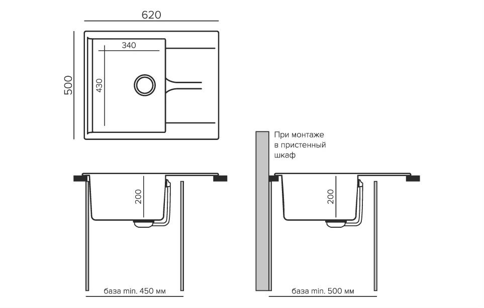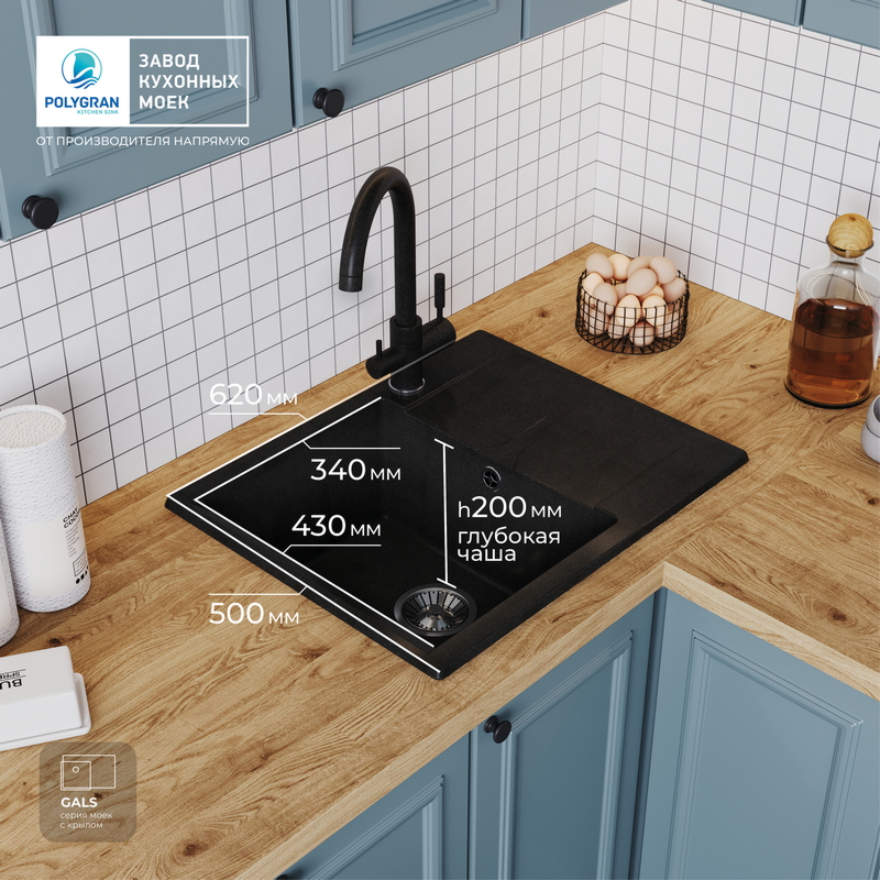 Мойка кухонная POLYGRAN GALS 620 (космос №316)