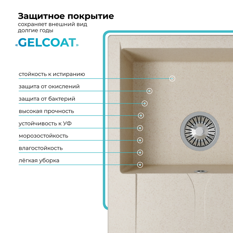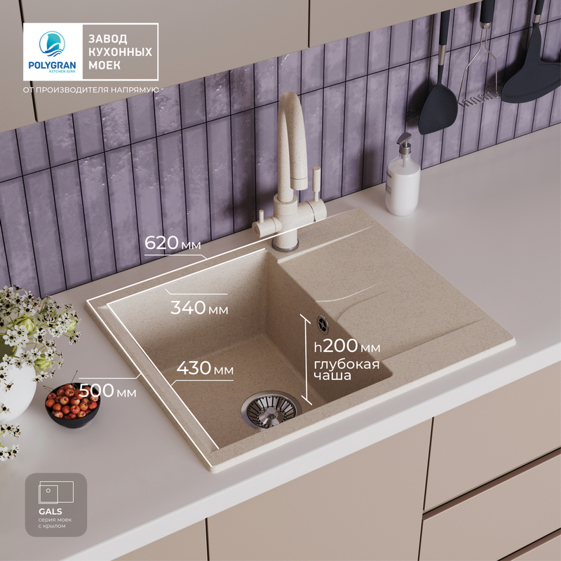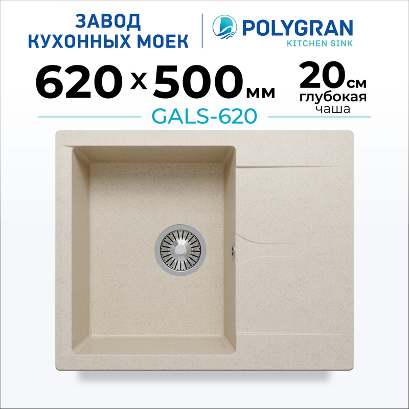 Мойка кухонная POLYGRAN GALS 620 (кремовый №327)