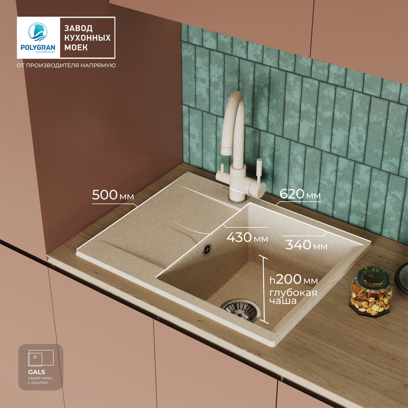 Мойка кухонная POLYGRAN GALS 620 (опал №328)
