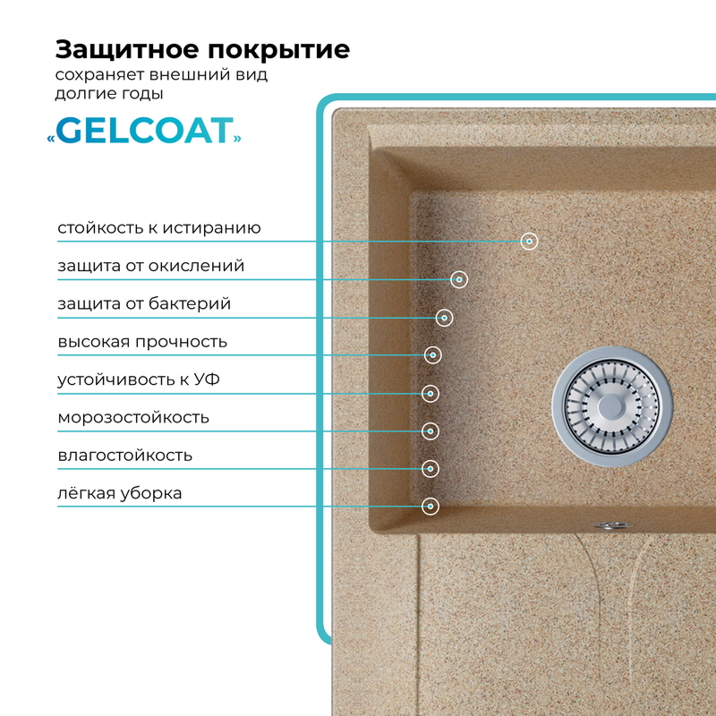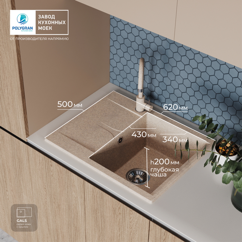 Мойка кухонная POLYGRAN GALS 620 (песочный №302)