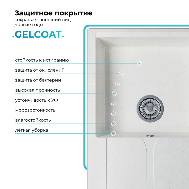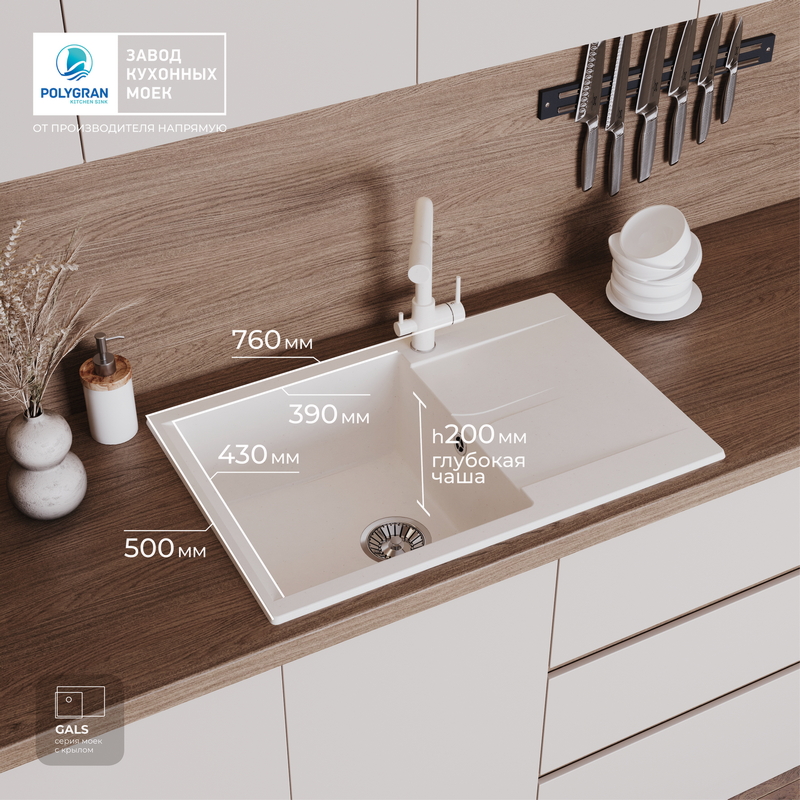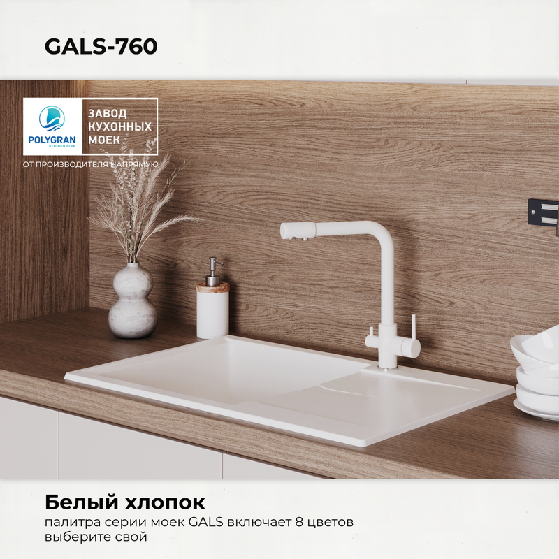 Мойка кухонная POLYGRAN GALS 760 (белый хлопок №36)