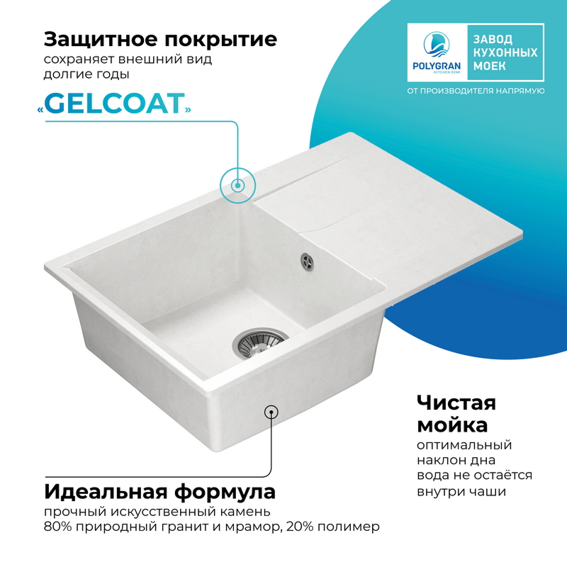 Polygran — российский бренд, специализирующийся на производстве высококачественных кухонных моек из искусственного камня. Компания успешно сочетает современные технологии и стильный дизайн, предлагая долговечные и функциональные изделия. Мойки Polygran отличаются прочностью, устойчивостью к повреждениям и высоким температурам.