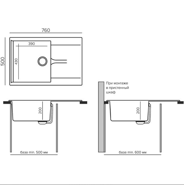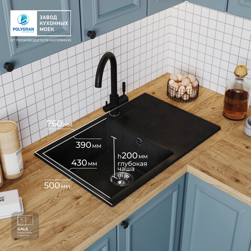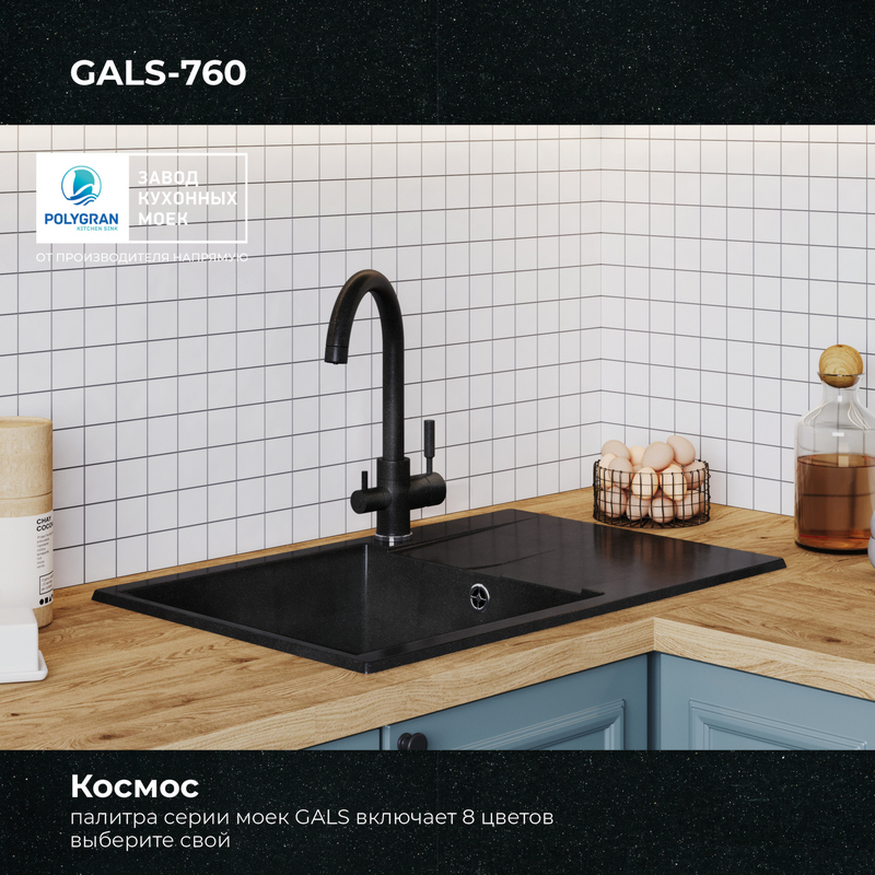 Мойка кухонная POLYGRAN GALS 760 (космос №316)