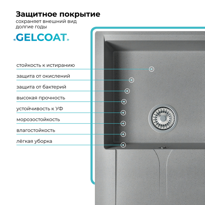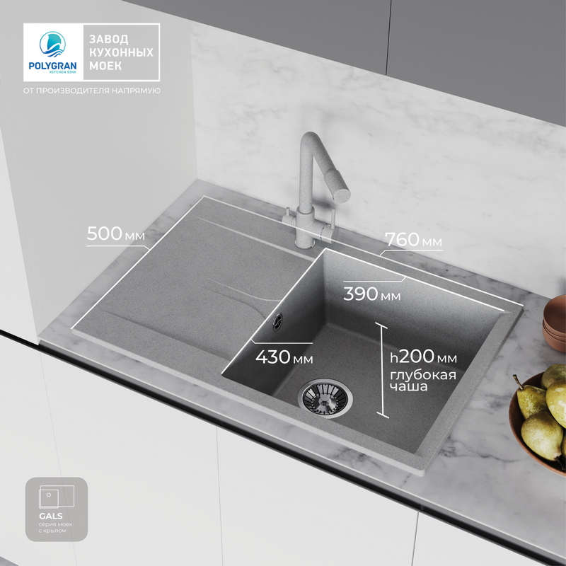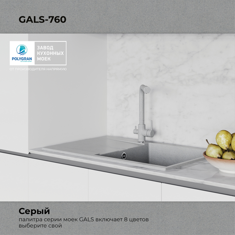 Мойка кухонная POLYGRAN GALS 760 (серый №14)