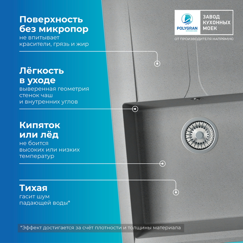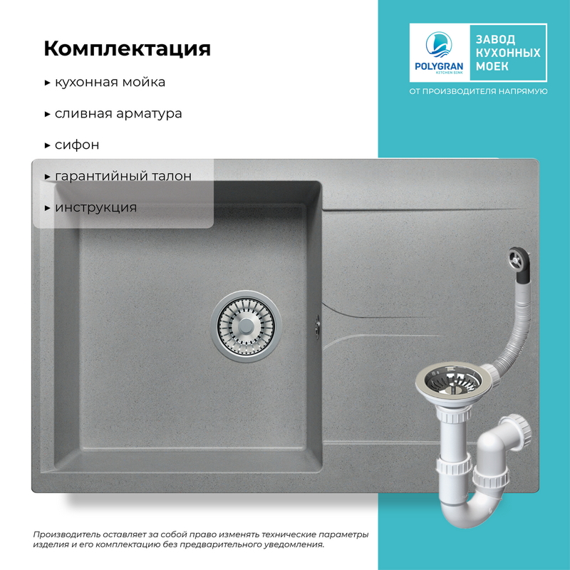 Polygran — российский бренд, специализирующийся на производстве высококачественных кухонных моек из искусственного камня. Компания успешно сочетает современные технологии и стильный дизайн, предлагая долговечные и функциональные изделия. Мойки Polygran отличаются прочностью, устойчивостью к повреждениям и высоким температурам.