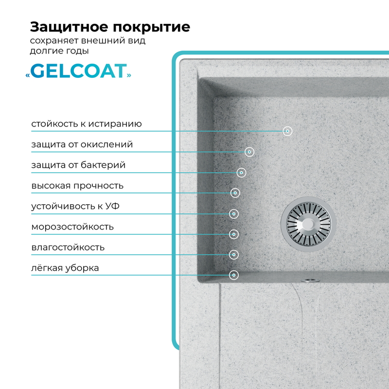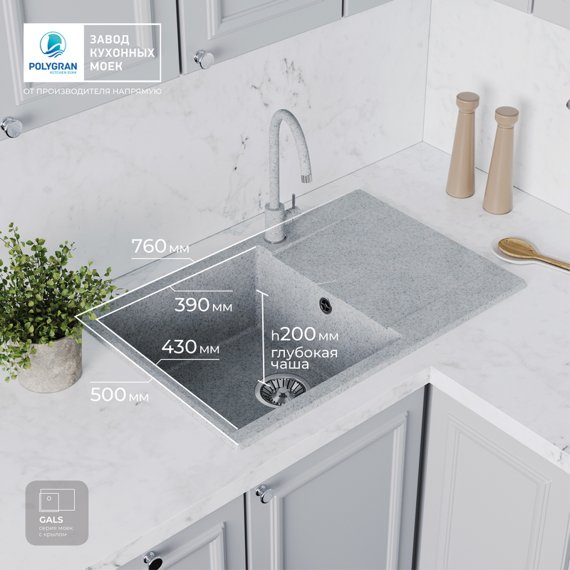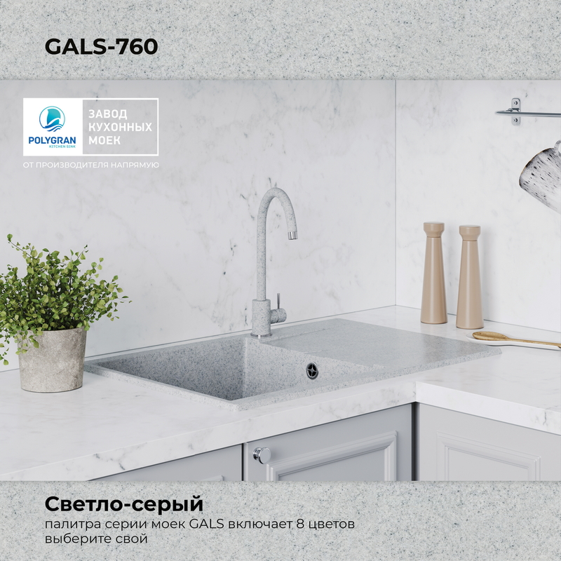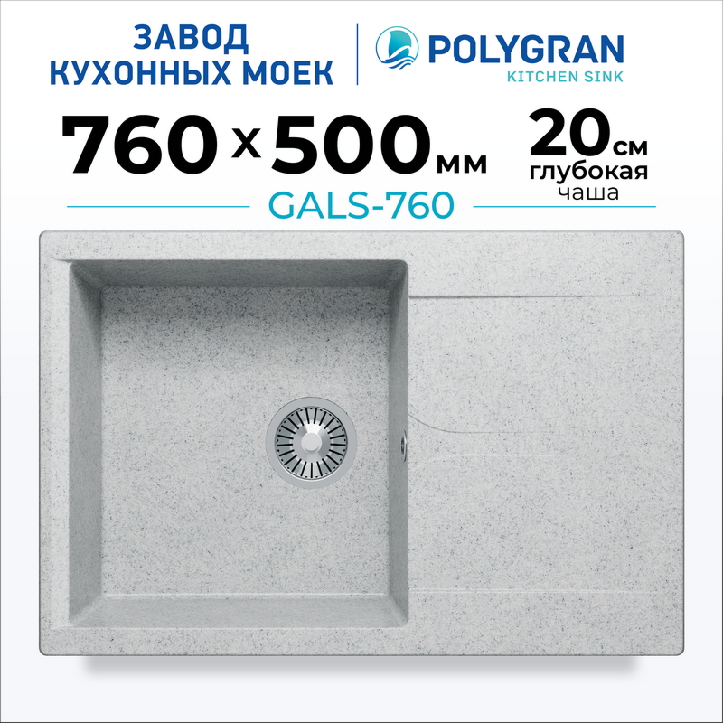 Мойка кухонная POLYGRAN GALS 760 (светло-серый №314)
