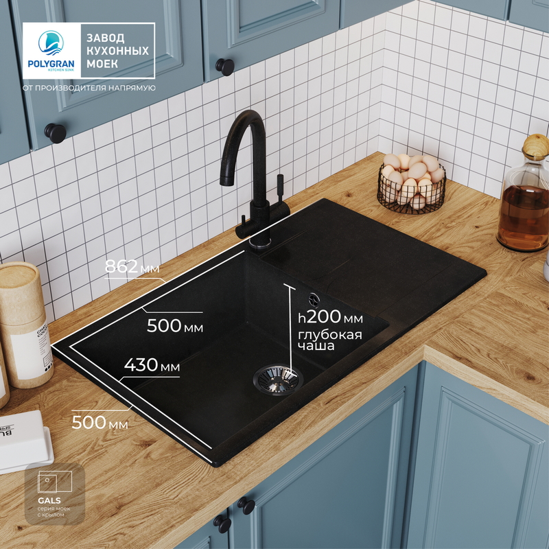 Мойка кухонная POLYGRAN GALS 862 (космос №316)