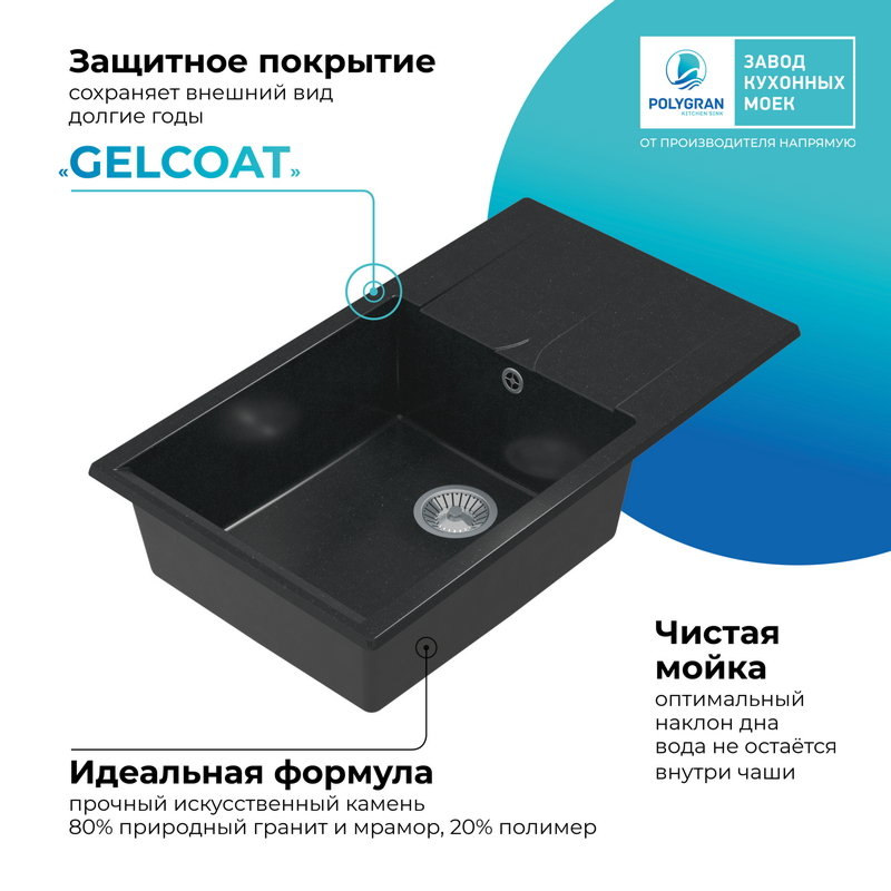 Polygran — российский бренд, специализирующийся на производстве высококачественных кухонных моек из искусственного камня. Компания успешно сочетает современные технологии и стильный дизайн, предлагая долговечные и функциональные изделия. Мойки Polygran отличаются прочностью, устойчивостью к повреждениям и высоким температурам.