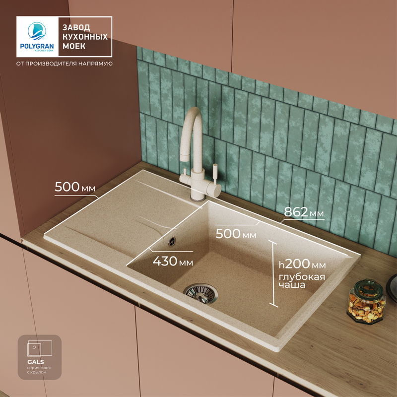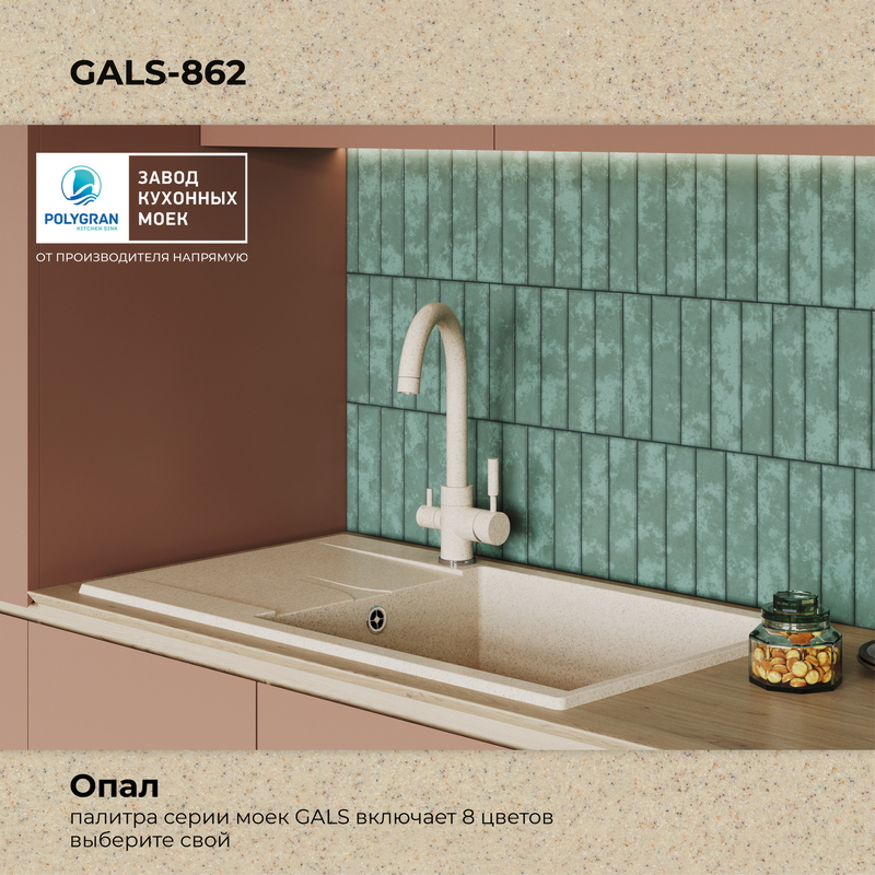 Мойка кухонная POLYGRAN GALS 862 (опал №328)