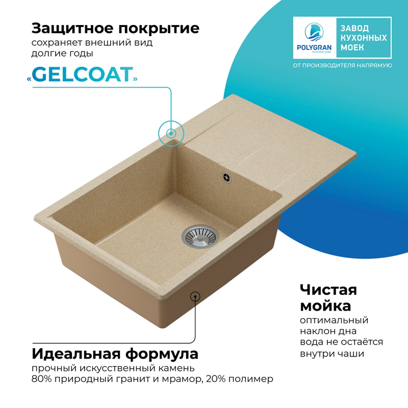 Polygran — российский бренд, специализирующийся на производстве высококачественных кухонных моек из искусственного камня. Компания успешно сочетает современные технологии и стильный дизайн, предлагая долговечные и функциональные изделия. Мойки Polygran отличаются прочностью, устойчивостью к повреждениям и высоким температурам.