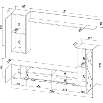 Набор мебели для гостиной NEO-5 (Серый/ Белый) Ш2130 В1700 Г330 Без подсветки