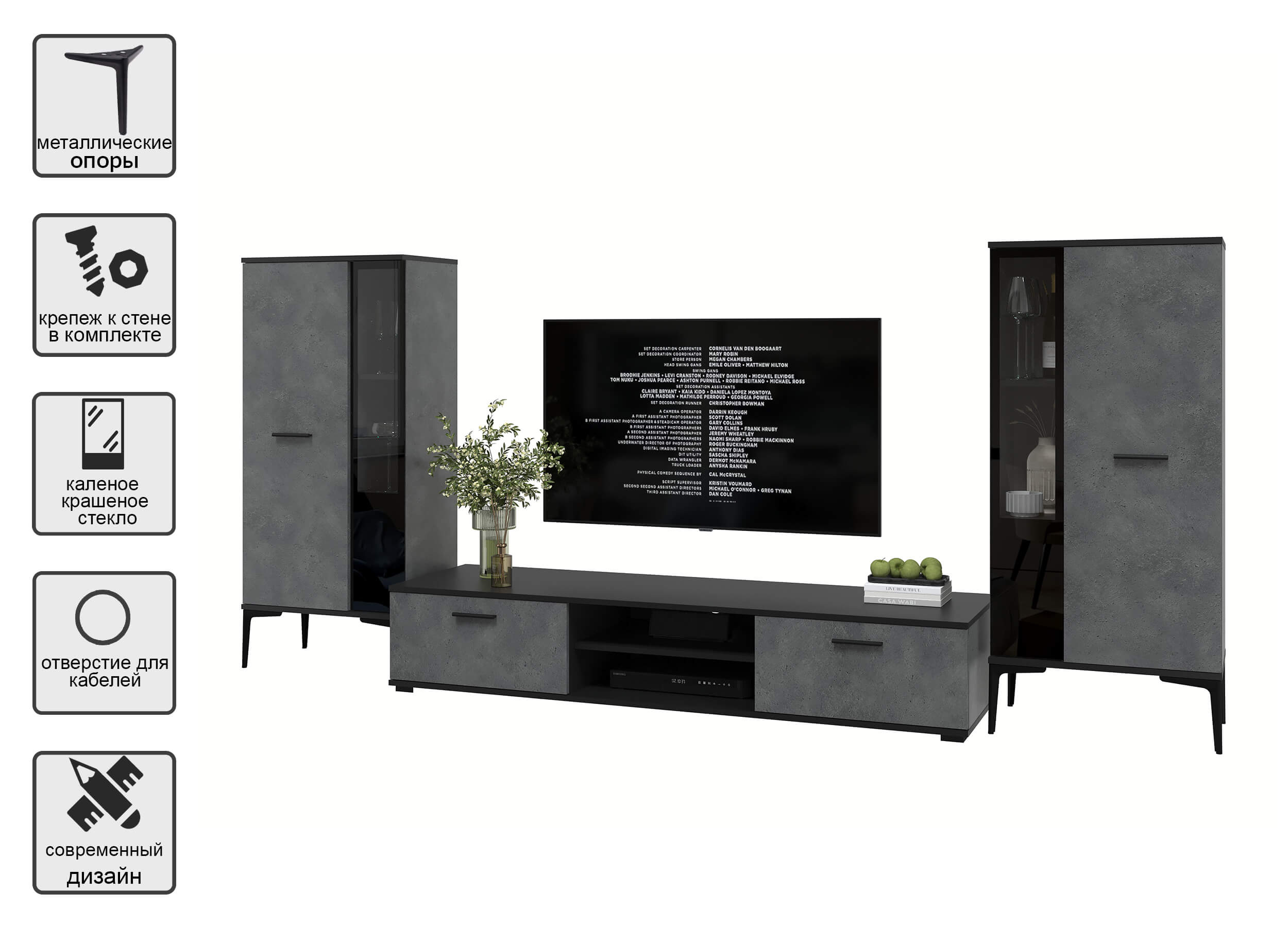 Набор мебели для гостиной NEO-8 (Черный/ Бетон портленд) Ш2955 В13250 Г335