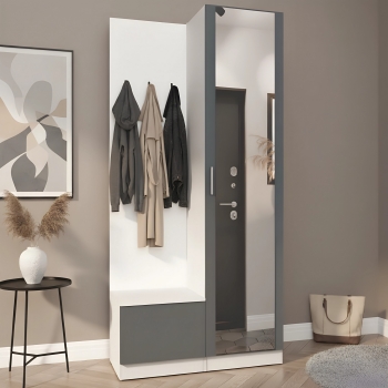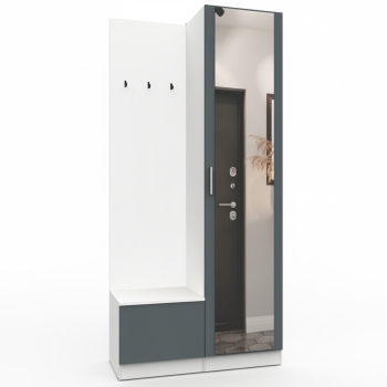 Простая и компактная прихожая вместительна и функциональна, позволит разместить все необходимые вещи: обувь, верхнюю одежду, головные уборы и различные мелкие вещи. Благодаря гармоничному сочетанию цветов прихожая создаст в вашей квартире ощущение уюта, тепла и комфорта.