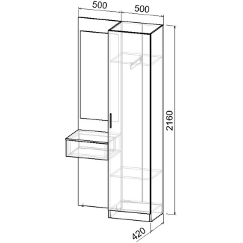Выдвижная вешалка, С зеркалом, С полками, Со шкафом, Шуфляды