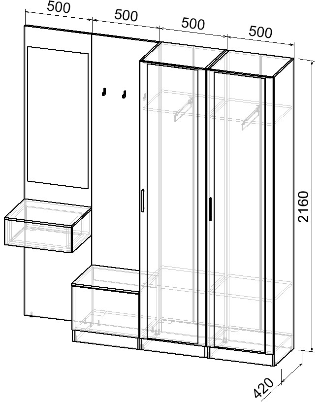 Простая и компактная прихожая вместительна и функциональна, позволит разместить все необходимые вещи: обувь, верхнюю одежду, головные уборы и различные мелкие вещи. Благодаря гармоничному сочетанию цветов прихожая создаст в вашей квартире ощущение уюта, тепла и комфорта.