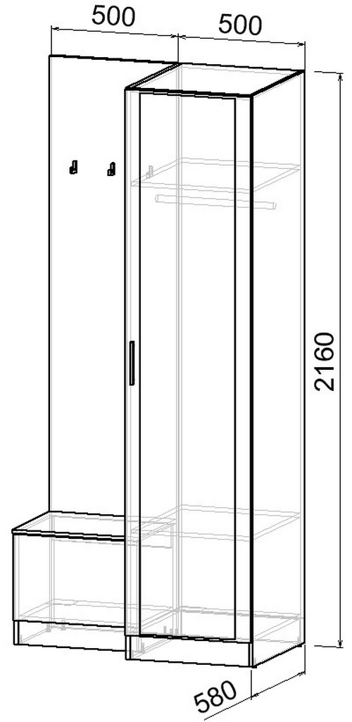 Набор мебели для прихожей "Марсель-151" МР 01-151 В2160 Ш1000 Г580 (ЛДСП Кашемир)