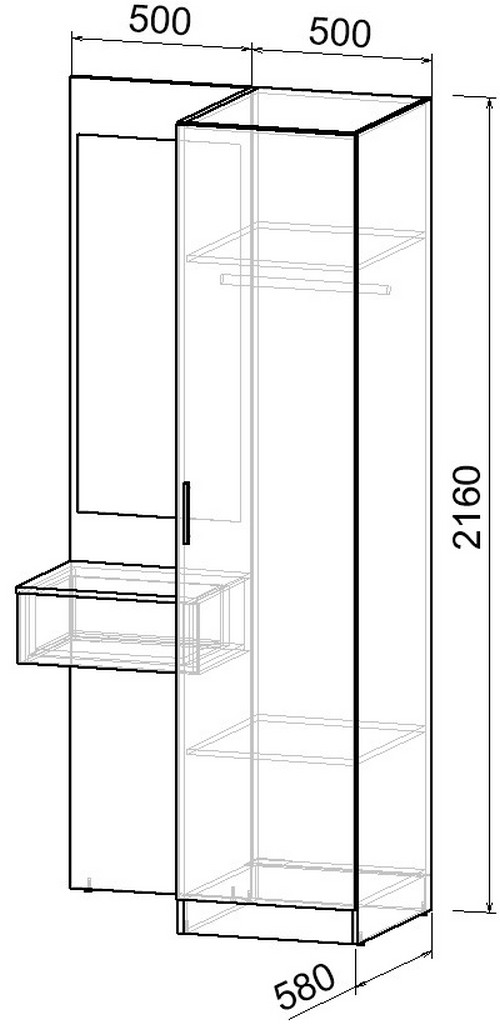 Набор мебели для прихожей "Марсель-152" МР 01-152 В2160 Ш1000 Г580 (ЛДСП Графит серый)