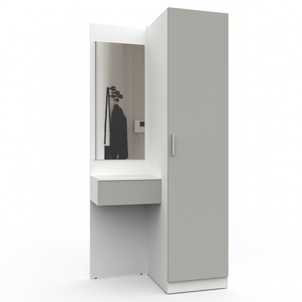 Простая и компактная прихожая вместительна и функциональна, позволит разместить все необходимые вещи: обувь, верхнюю одежду, головные уборы и различные мелкие вещи. Благодаря гармоничному сочетанию цветов прихожая создаст в вашей квартире ощущение уюта, тепла и комфорта.