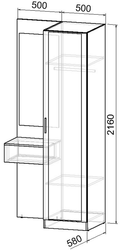 Набор мебели для прихожей "Марсель-153" МР 01-153 В2160 Ш1000 Г580 (ЛДСП Графит серый)