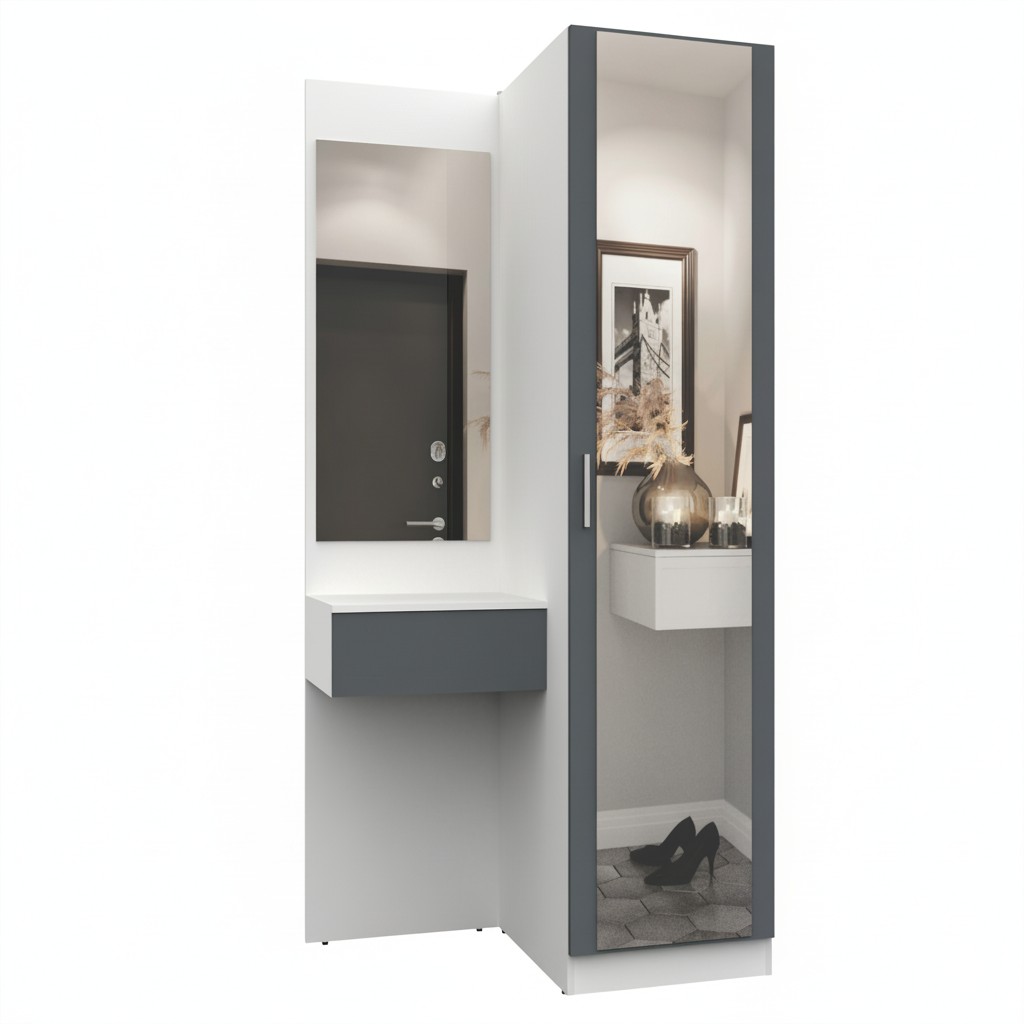Простая и компактная прихожая вместительна и функциональна, позволит разместить все необходимые вещи: обувь, верхнюю одежду, головные уборы и различные мелкие вещи. Благодаря гармоничному сочетанию цветов прихожая создаст в вашей квартире ощущение уюта, тепла и комфорта.