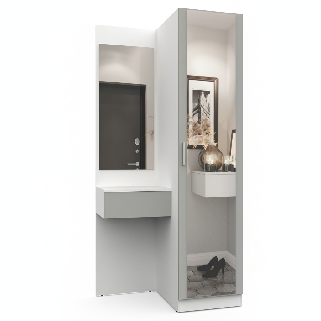 Простая и компактная прихожая вместительна и функциональна, позволит разместить все необходимые вещи: обувь, верхнюю одежду, головные уборы и различные мелкие вещи. Благодаря гармоничному сочетанию цветов прихожая создаст в вашей квартире ощущение уюта, тепла и комфорта.
