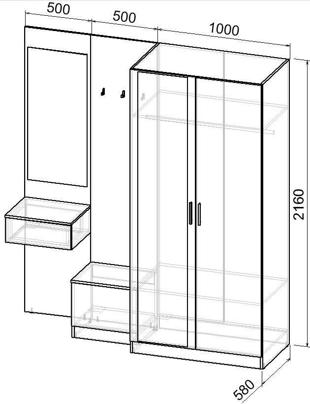 Простая и компактная прихожая вместительна и функциональна, позволит разместить все необходимые вещи: обувь, верхнюю одежду, головные уборы и различные мелкие вещи. Благодаря гармоничному сочетанию цветов прихожая создаст в вашей квартире ощущение уюта, тепла и комфорта.