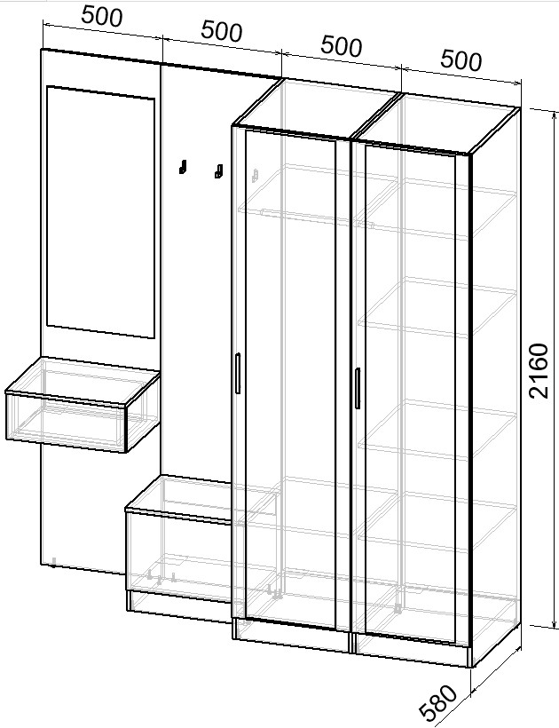 Набор мебели для прихожей "Марсель-161" МР 01-161 В2160 Ш2000 Г580 (ЛДСП Графит серый)