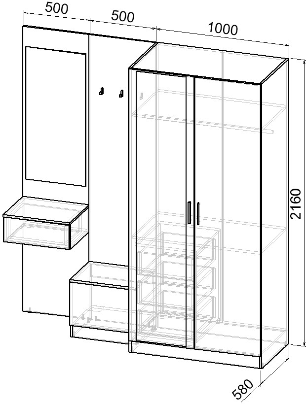 Простая и компактная прихожая вместительна и функциональна, позволит разместить все необходимые вещи: обувь, верхнюю одежду, головные уборы и различные мелкие вещи. Благодаря гармоничному сочетанию цветов прихожая создаст в вашей квартире ощущение уюта, тепла и комфорта.