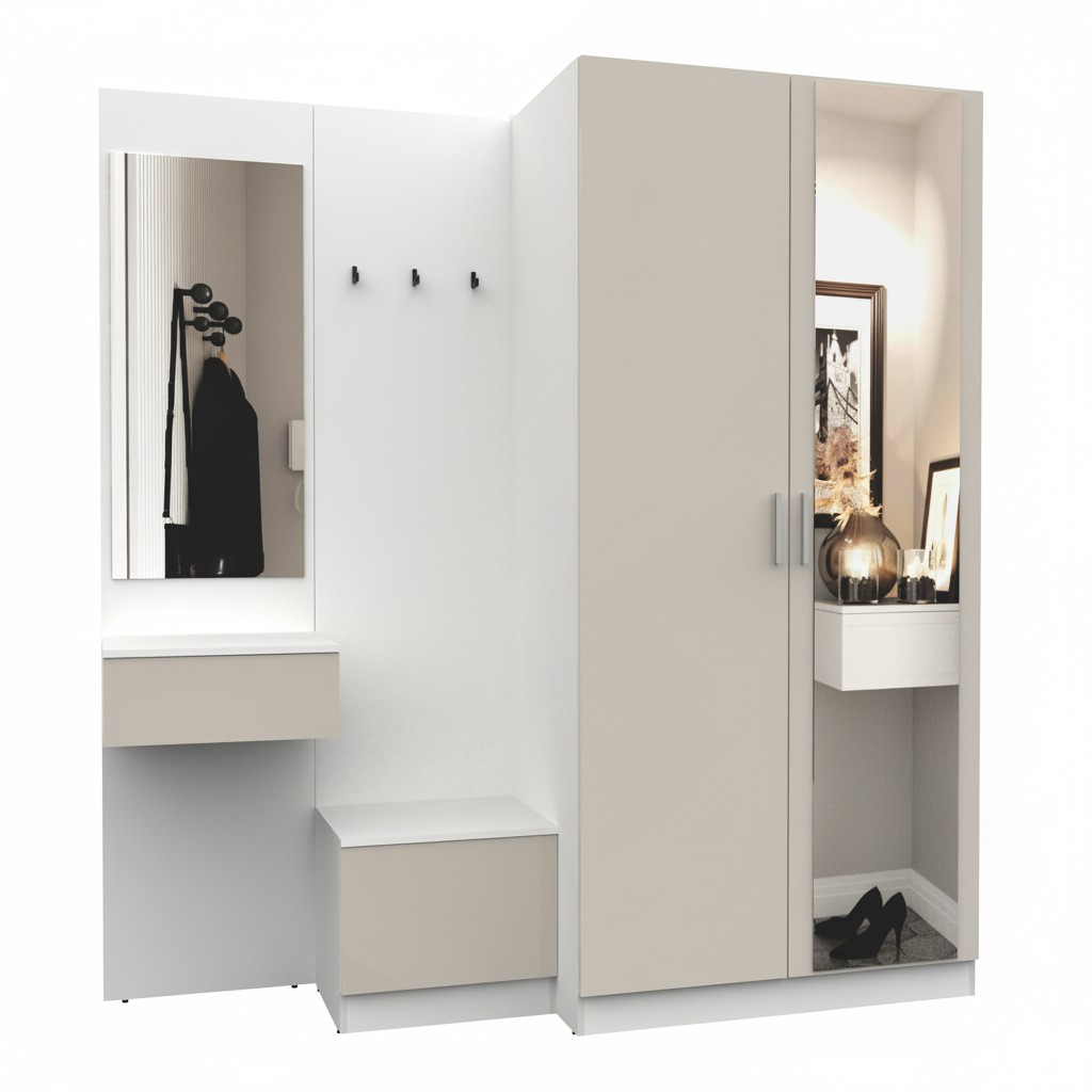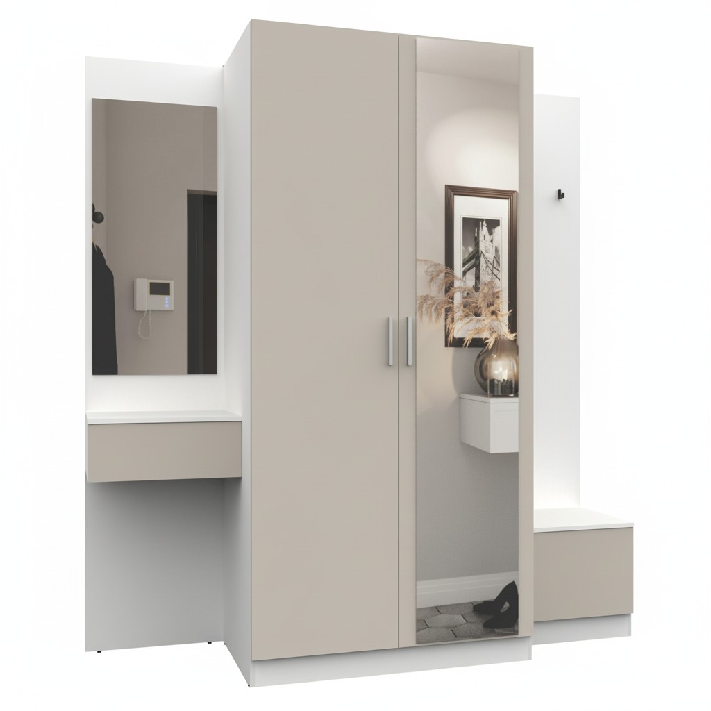 Простая и компактная прихожая вместительна и функциональна, позволит разместить все необходимые вещи: обувь, верхнюю одежду, головные уборы и различные мелкие вещи. Благодаря гармоничному сочетанию цветов прихожая создаст в вашей квартире ощущение уюта, тепла и комфорта.