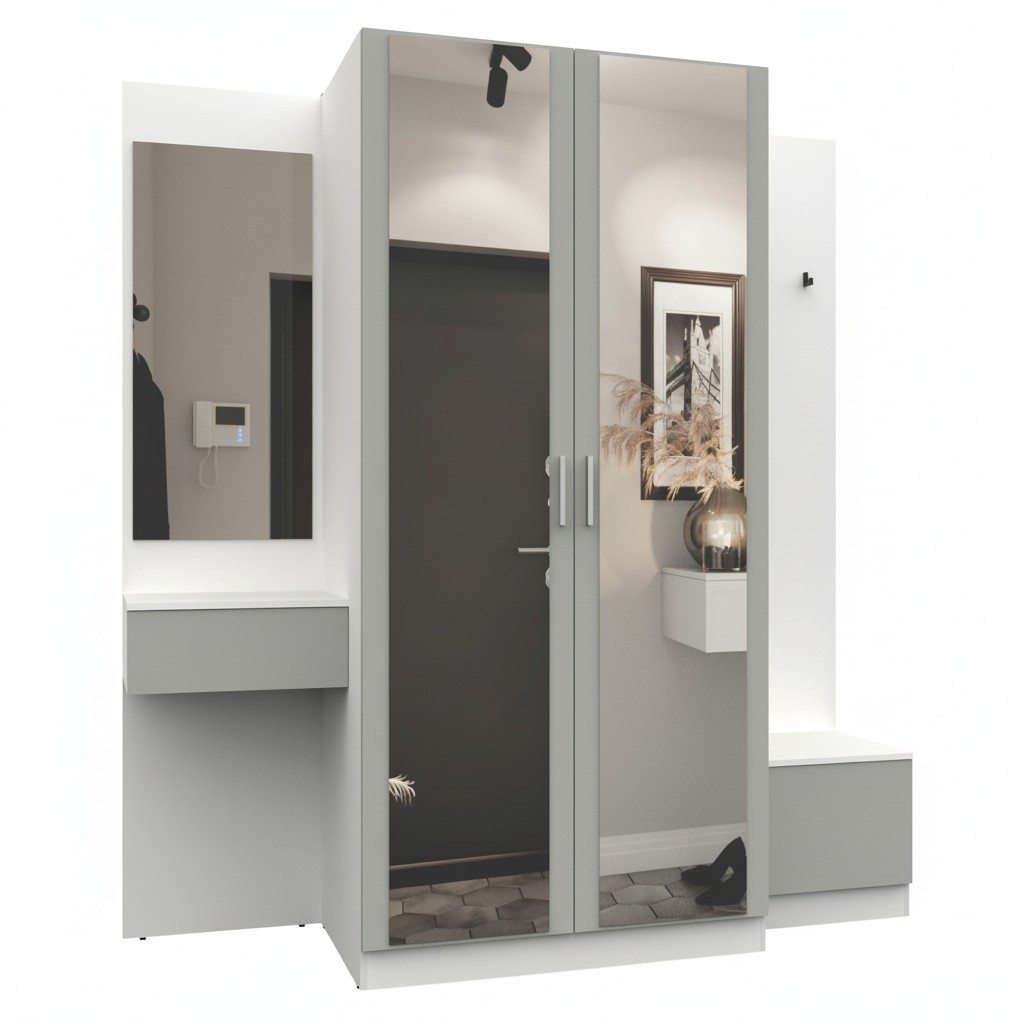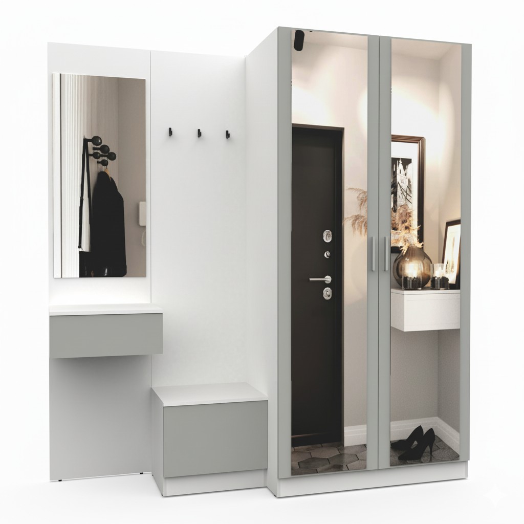 Простая и компактная прихожая вместительна и функциональна, позволит разместить все необходимые вещи: обувь, верхнюю одежду, головные уборы и различные мелкие вещи. Благодаря гармоничному сочетанию цветов прихожая создаст в вашей квартире ощущение уюта, тепла и комфорта.