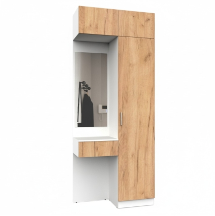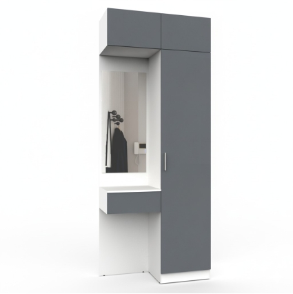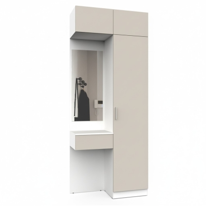 Простая и компактная прихожая вместительна и функциональна, позволит разместить все необходимые вещи: обувь, верхнюю одежду, головные уборы и различные мелкие вещи. Благодаря гармоничному сочетанию цветов прихожая создаст в вашей квартире ощущение уюта, тепла и комфорта.