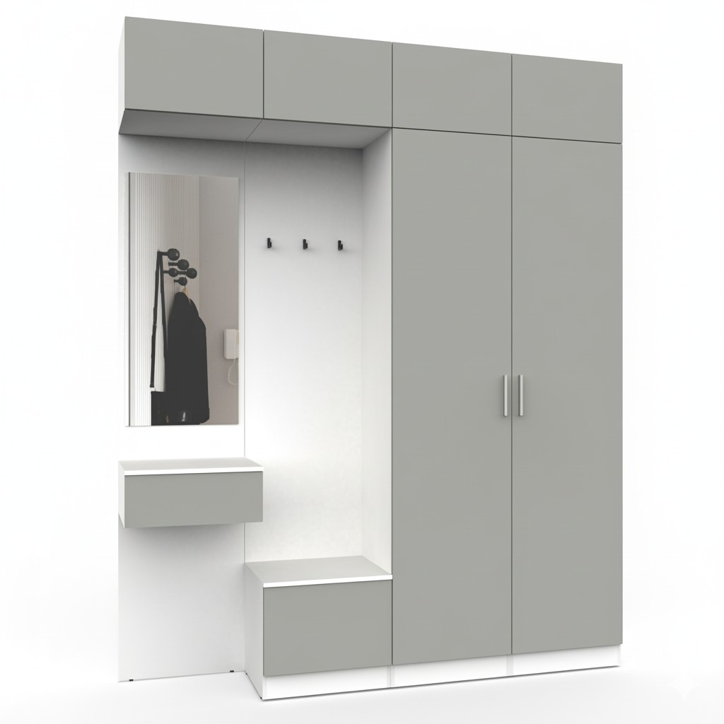 Простая и компактная прихожая вместительна и функциональна, позволит разместить все необходимые вещи: обувь, верхнюю одежду, головные уборы и различные мелкие вещи. Благодаря гармоничному сочетанию цветов прихожая создаст в вашей квартире ощущение уюта, тепла и комфорта.