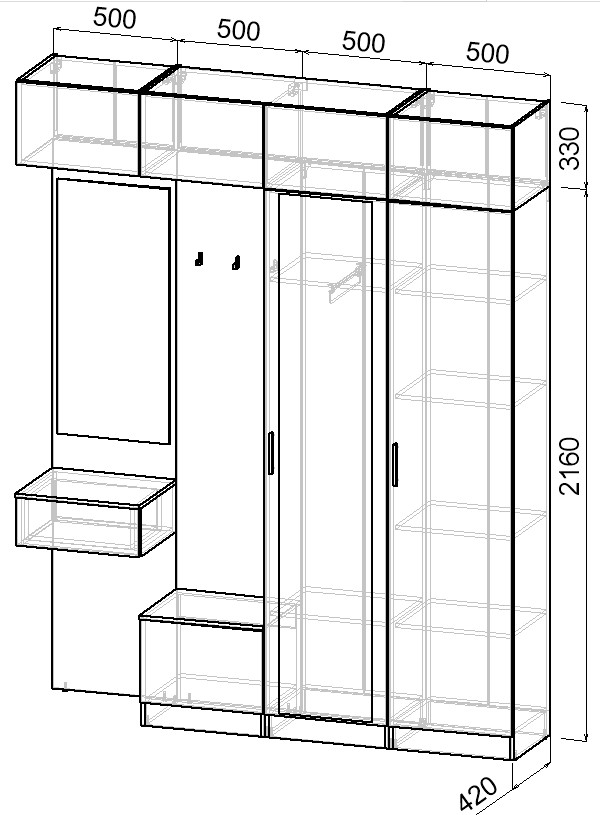 Простая и компактная прихожая вместительна и функциональна, позволит разместить все необходимые вещи: обувь, верхнюю одежду, головные уборы и различные мелкие вещи. Благодаря гармоничному сочетанию цветов прихожая создаст в вашей квартире ощущение уюта, тепла и комфорта.