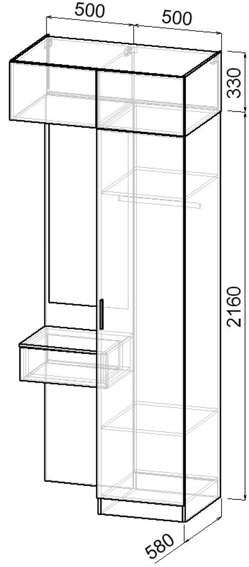 Набор мебели для прихожей "Марсель-252" МР 01-252 В2490 Ш1000 Г580 (ЛДСП Графит серый)