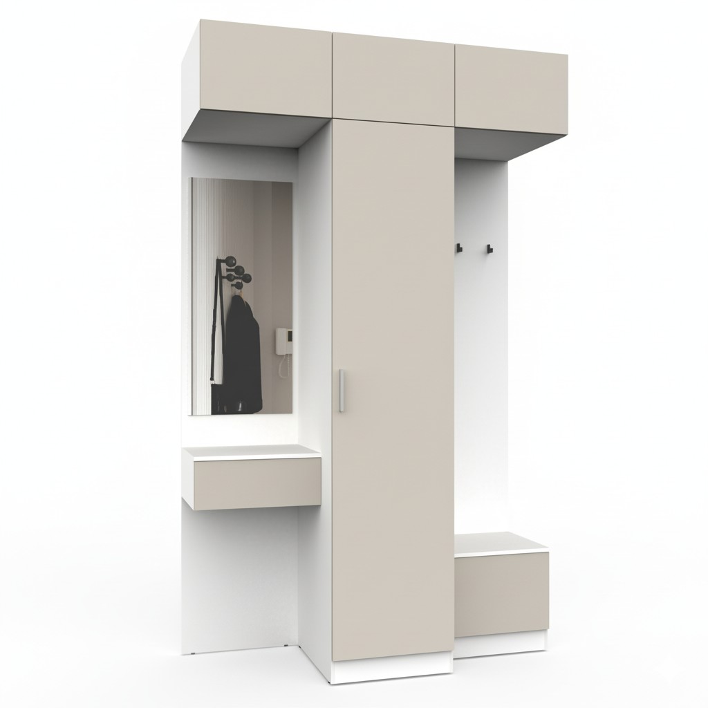 Простая и компактная прихожая вместительна и функциональна, позволит разместить все необходимые вещи: обувь, верхнюю одежду, головные уборы и различные мелкие вещи. Благодаря гармоничному сочетанию цветов прихожая создаст в вашей квартире ощущение уюта, тепла и комфорта.