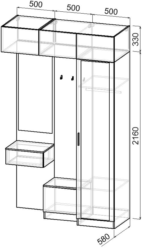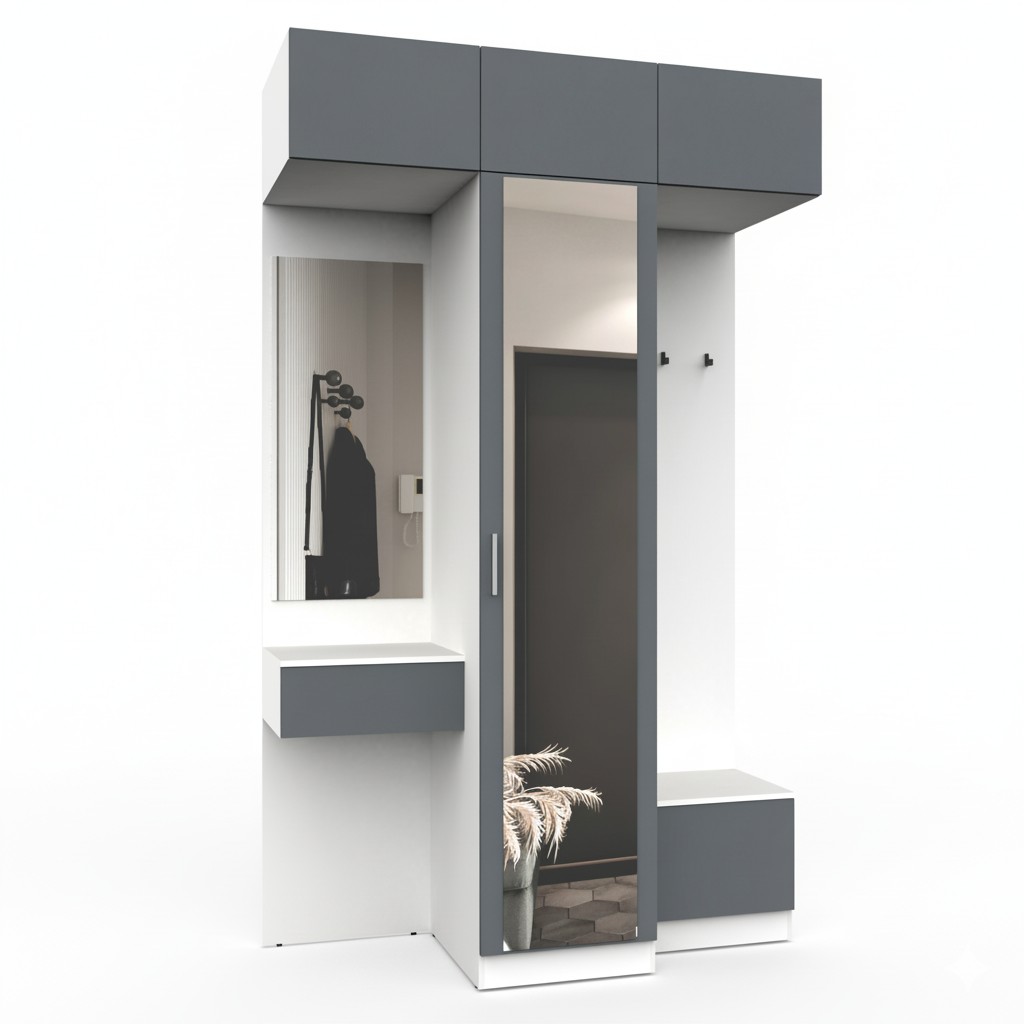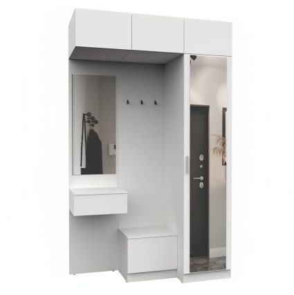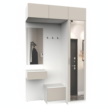 Простая и компактная прихожая вместительна и функциональна, позволит разместить все необходимые вещи: обувь, верхнюю одежду, головные уборы и различные мелкие вещи. Благодаря гармоничному сочетанию цветов прихожая создаст в вашей квартире ощущение уюта, тепла и комфорта.
