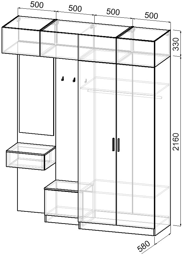 Простая и компактная прихожая вместительна и функциональна, позволит разместить все необходимые вещи: обувь, верхнюю одежду, головные уборы и различные мелкие вещи. Благодаря гармоничному сочетанию цветов прихожая создаст в вашей квартире ощущение уюта, тепла и комфорта.